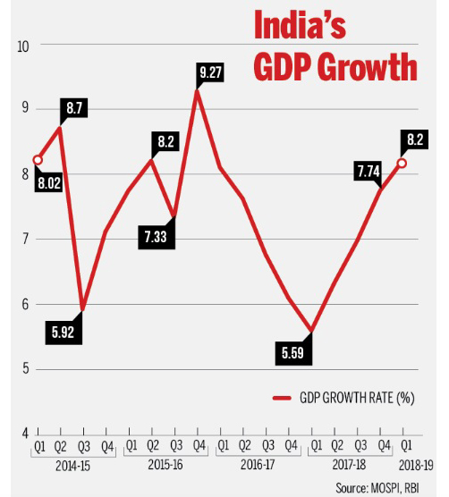 The country’s gross domestic product (GDP) growth rate for the first quarter (April – June) of fiscal year 2018-19