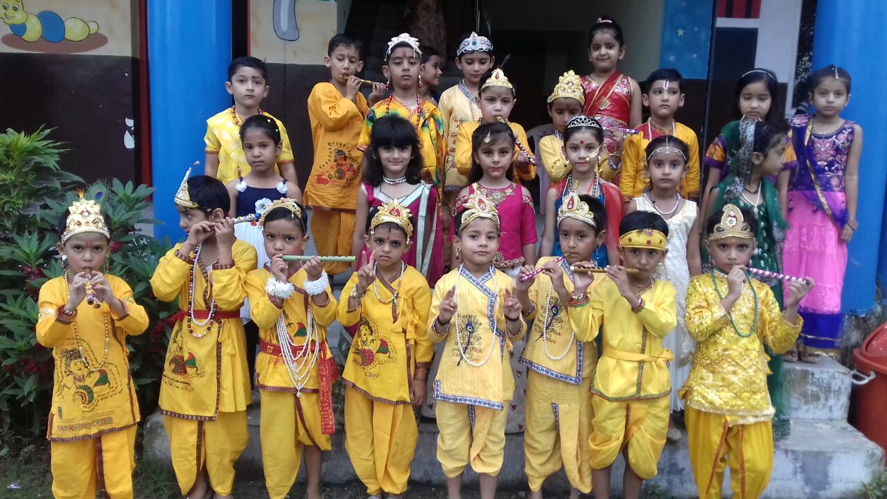 Today, Jammu Sanskriti School Kathua celebrated the pious festival of Krishna Janamashtami with great religious fervour in the school premises. The ground reverberated with the holy chants from the Bhagvad Gita. Students came dressed in Krishan and Radha outfits. They wore peacock head gears and decorated Matkis and flutes. School was decorated colorfully with Jhankis depicting the birth place of Lord Krishan.