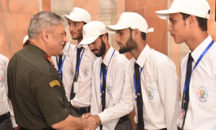 Army chief General Bipin Singh Rawat met with a group of college students from Kishtwar district in Jammu and Kashmir Wednesday and encouraged them to contribute to the development of their area. Interacting with the 20 undergraduate students from three colleges in different parts of Kishtwar at the South Block here, General Rawat also cautioned them against joining activities that were against the society and the country.