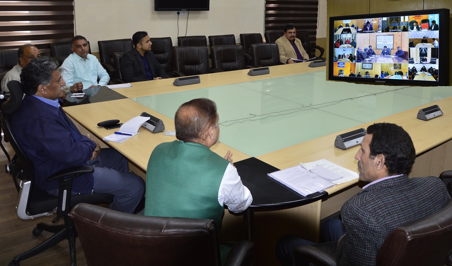 JAMMU, NOVEMBER 06: Advisor to Governor Khurshid Ahmed Ganai today convened a meeting through video conferencing with Deputy Commissioners of Kashmir Division and DCs of Kargil, Doda Ramban and Poonch to review the situation in the horticulture sector that has arisen after recent untimely snowfall.
