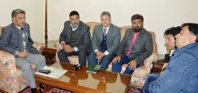SRINAGAR, NOVEMBER 09: A delegation of Kashmir Valley Fruit Growers Cum Dealers Union (KVFG) today called on the Advisor to Governor, Khurshid Ahmad Ganai and appraised him about the damage of orchards due to recent untimely snowfall in the State.