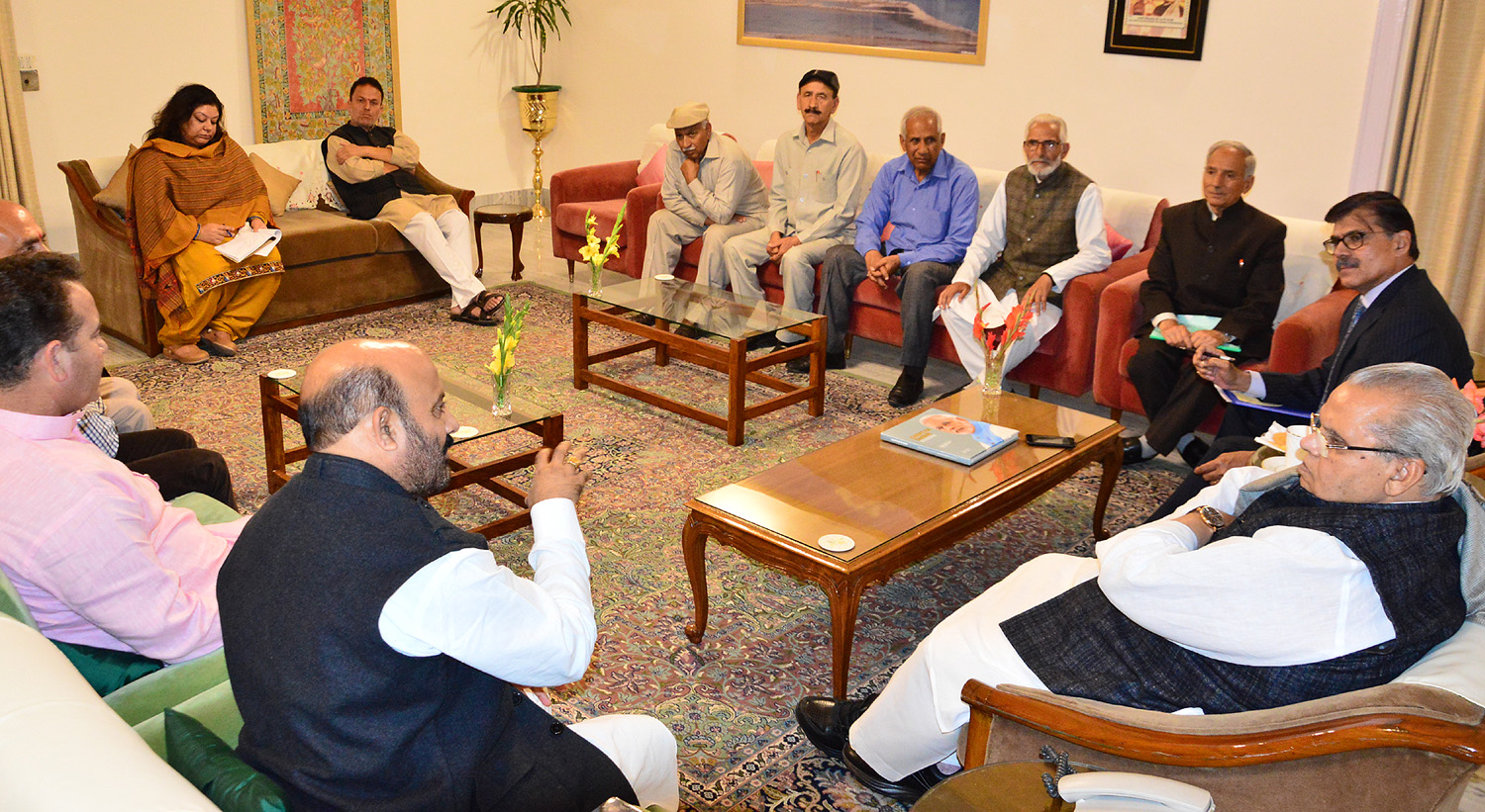 JAMMU, NOVEMBER 9: A delegation from Kishtwar accompanied by MLAs Sh. Bali Bhagat and Sh. Sunil Sharma met Governor Satya Pal Malik at the Raj Bhavan here today. Sh. Vijay Kumar, Advisor to Governor was present on the occasion.