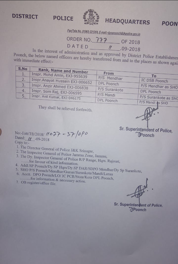 Home J & K Transfers and Postings
