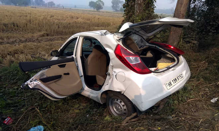 The car, carrying three youths from Dadri to Kurukshetra for group D paper, that hit a tree near Kaithal