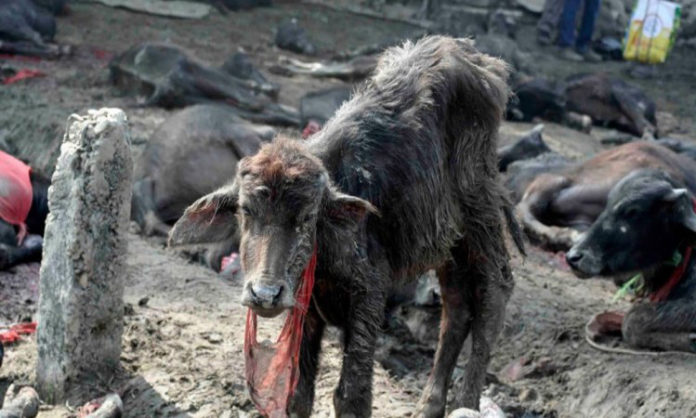 “One of the primitive methods of worship is animal and bird sacrifices, while the majority of Hindus do not accept the practice. Slaughtering of animals is carried out in public in open courtyard of the temple without considering health and mental harm of the devotees.