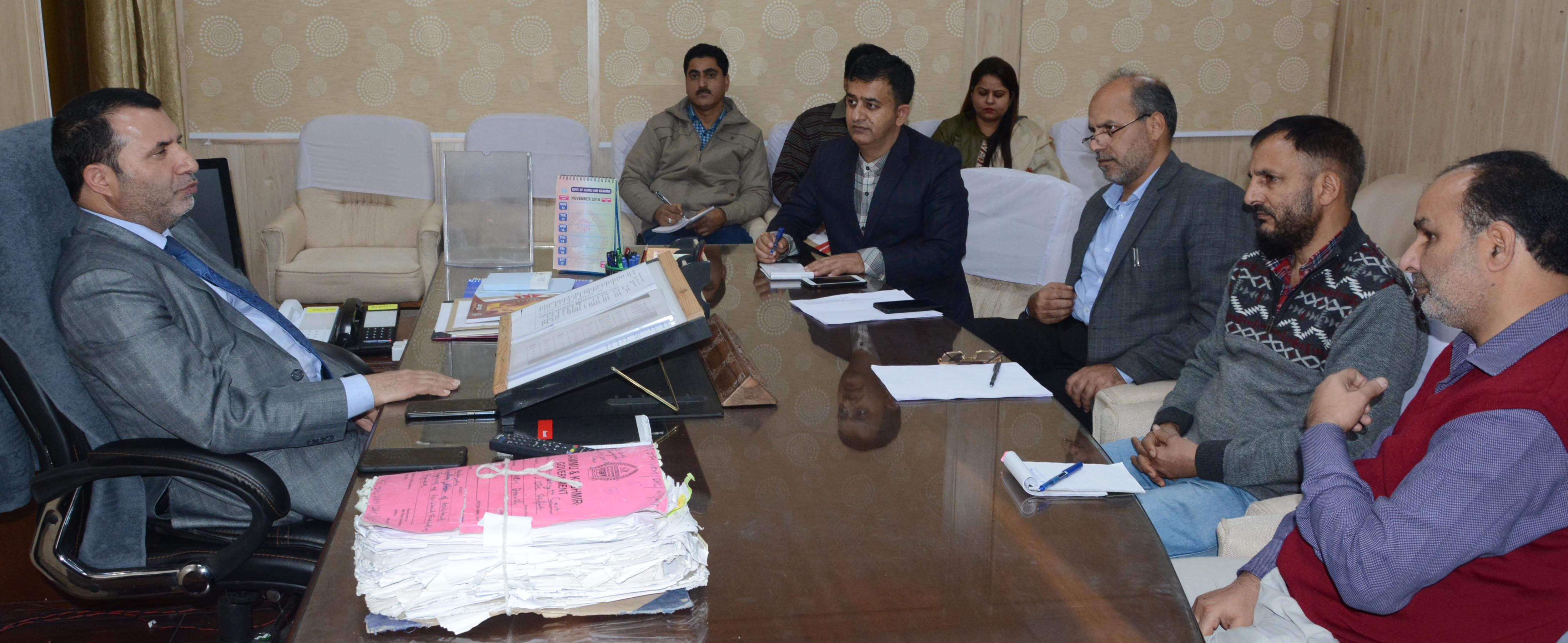 JAMMU, NOVEMBER 14: Secretary, Disaster Management, Relief, Rehabilitation and Reconstruction (DMRRR), Farooq Ahmed Shah today held a follow up meeting regarding disbursement of enhanced SDRF relief to the orchardists affected by Nov 3/4 snowfall.