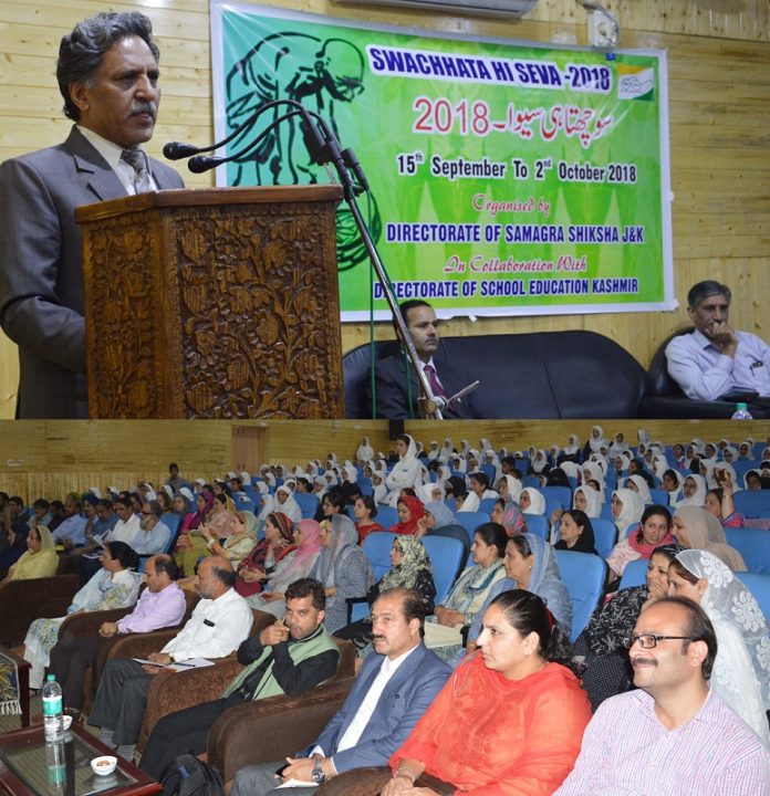 The Advisor Ganai was speaking at a function after witnessing several activities carried out in the second phase of cleanliness drive, “Swachhata Hi Seva-2018” held by the Directorate of SAMAGRA Shiksha, in collaboration with Directorate of School Education Kashmir here at Government Girls Higher Secondary School (GGHS) Kothi Bagh.