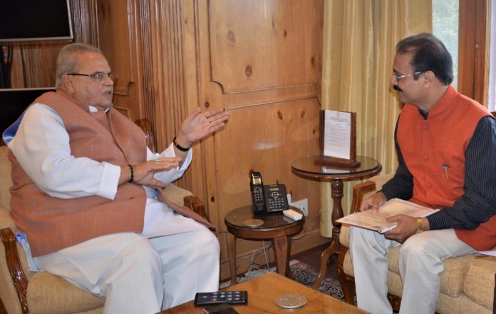 SRINAGAR, SEPTEMBER 17: Prof. Rakesh Sehgal, Director, National Institute of Technology (NIT), Srinagar, accompanied by Dr. Nisar Ahmed Mir, Registrar, NIT, met Governor Satya Pal Malik at the Raj Bhavan here today.