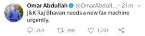 Home J & K Raj Bhawan needs new fax machine, Omar tweets on J&K fiasco