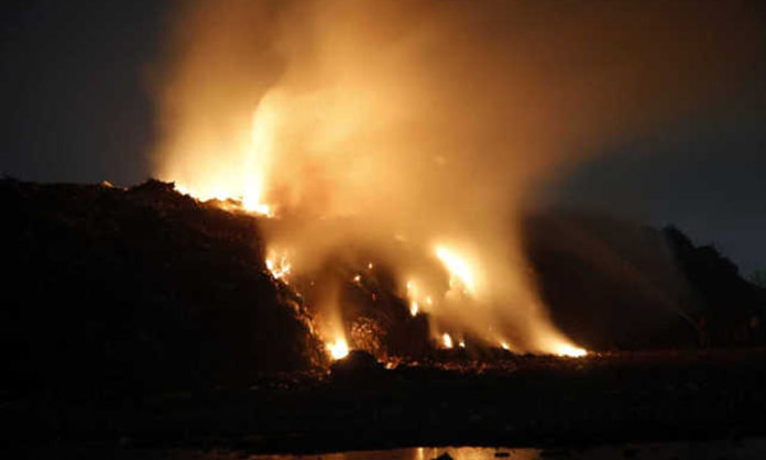 According to the information available, the fire and emergency wing of the Municipal Corporation received a call about the fire mishap at the dumping ground at 5:48 pm, following which two fire tenders were rushed to the spot.