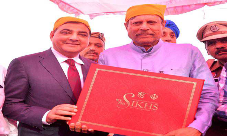 Cricketer Kapil Dev, while attending the state government event to mark Parkash Utsav of Guru Nanak here today, presented his book on Sikhism to Chief Minister Capt Amarinder Singh, former PMDr Manmohan Singh and Governor VP Badnore.
