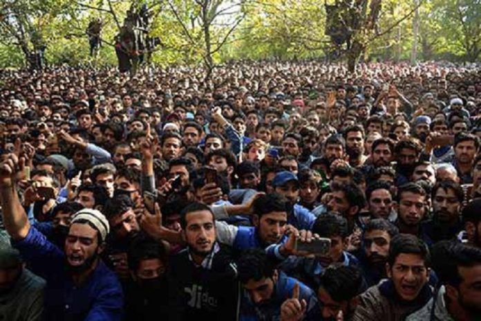 Thousands of people from the adjoining and far-off places reached the native village of slain militant commander and participated in his last rites.
