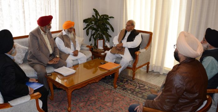 Jammu, November 26: A delegation of Sikh Community led by Sh. Charanjit Singh Khalsa, Member, J&K Legislative Council, met Governor Satya Pal Malik at the Raj Bhavan here today.