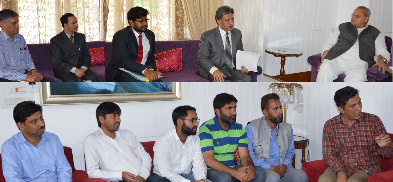 SRINAGAR, SEPTEMBER 26: A delegation of agitating SSA teachers led by Sh. Abdul Qayoom Wani, President, Employees Joint Action Committee, met Governor Satya Pal Malik at the Raj Bhavan here today.