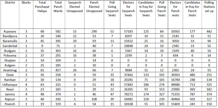 He said in the areas going to polls in Phase-V, electorate of 404283 will be voting for Sarpanch constituencies and 270295 for Panch constituencies. “Photo Voter Slips have been distributed among the voters to inform them of their polling station,” he said.