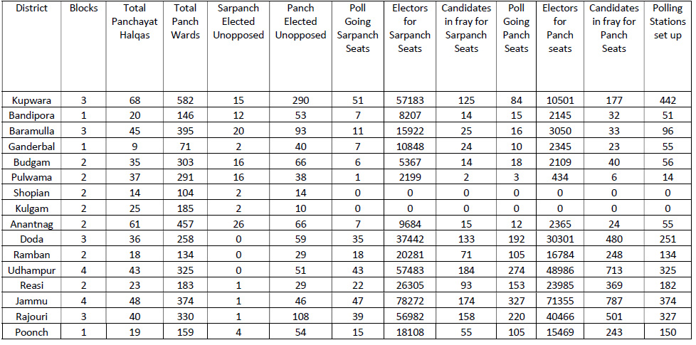 JAMMU, NOVEMBER 28: Polling for Phase-V of Panchayat Polls-2018 will be held tomorrow at 2512 polling stations including 769 in Kashmir division and 1743 in Jammu division. The timing for polling is from 8 am to 2 pm.