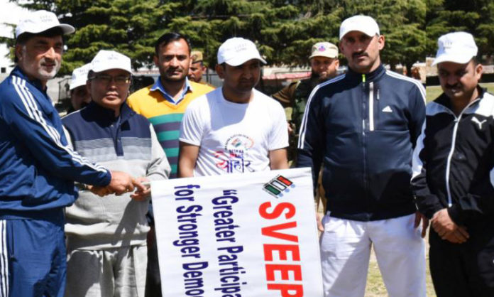 KISHTWAR, MARCH 31: With an aim to create awareness about the electoral process, ethical voting and motivate the people to actively participate in the electoral  process , today General Observer M. Joy Sing and District Election Officer (DEO) Kishtwar, Angrez Singh Rana flagged off the “Democracy Run” under SVEEP programme from Chowgan Ground Kishtwar here.