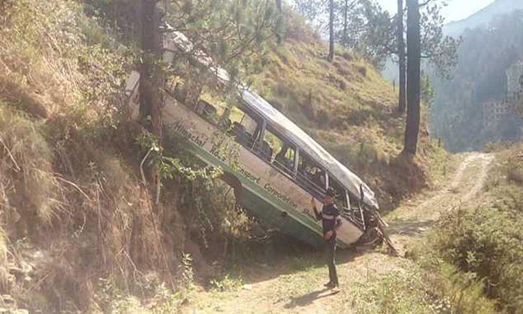 The driver of the Himachal Road Transport Corporation (HRTC) bus died on the spot and two children succumbed to injuries when they were being taken to a hospital.The bus was carrying students of the Convent of Jesus & Mary.