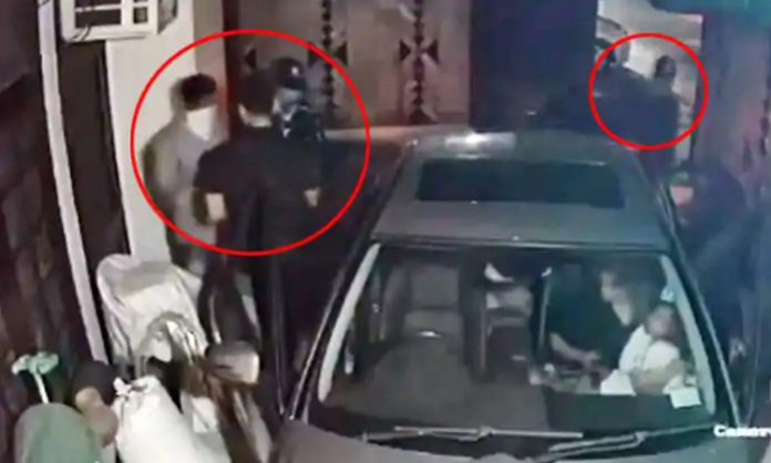 The entire incident was captured on the CCTV camera installed in the house in which three unidentified men could be clearly seen entering the house while the man was parking his car inside the house.
