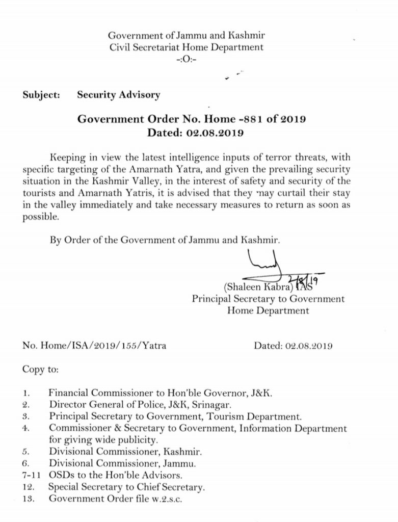 Breaking NewsJ & K Tourists And Yatris asked to leave the state, Government issues advisory By Paigaam News - August 2, 2019 591 Facebook Twitter Google+ Pinterest WhatsApp