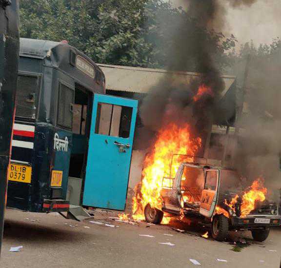 New Delhi, November 2: A scuffle broke out between police personnel and advocates at Tis Hazari Court on Saturday afternoon during which a police vehicle was set afire, officials said.