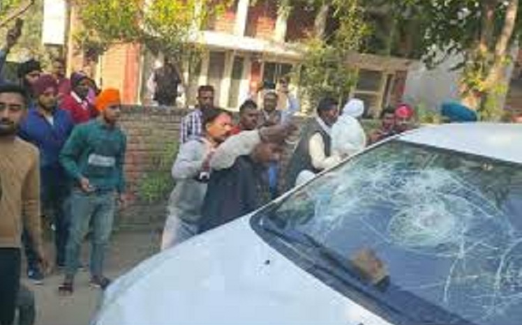 Faridkot, December 2: The car of Sukhjeet Singh Kaka Garh, Congress MLA from Dharamkot in Moga, was on Monday attacked by some people in front of the civil hospital in Moga.
