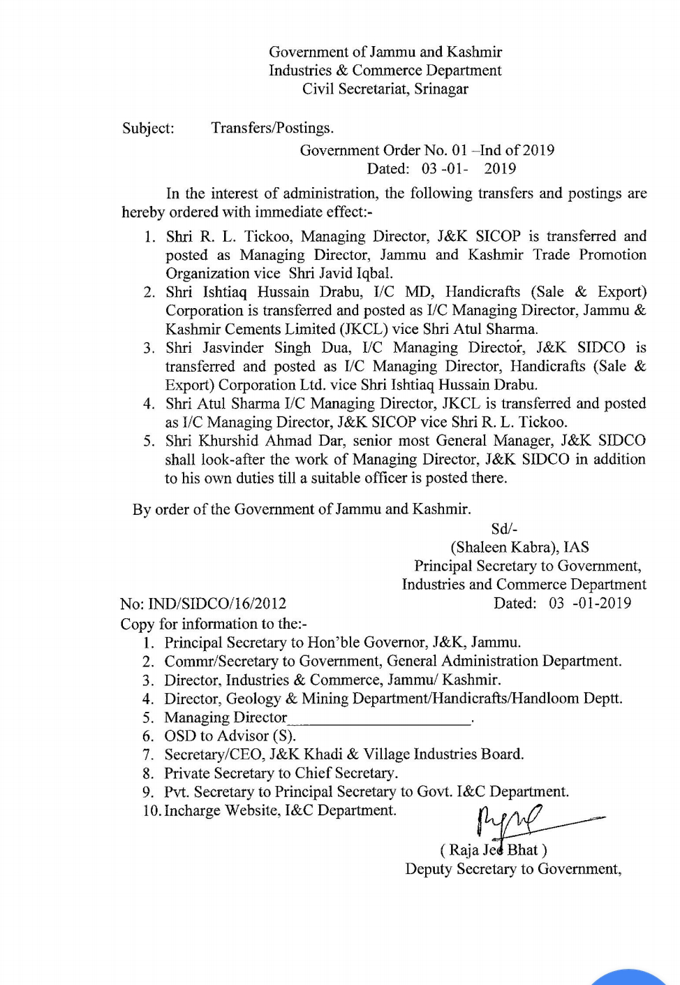 J & K Transfers and Postings By Paigaam News - January 3, 2019 403 Facebook Twitter Google+ Pinterest WhatsApp