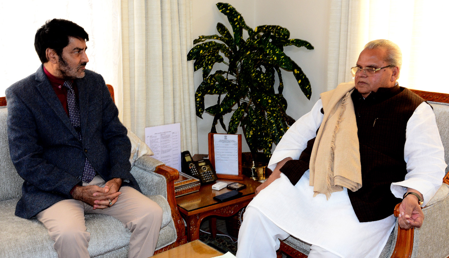 JAMMU, JANUARY 3: Sh. Balwant Thakur, former Consultant-cum-Regional Director, Indian Council for Cultural Relations (ICCR) J&K, and Director of “Natrang Theatre Group” met Governor Satya Pal Malik at the Raj Bhavan here today.