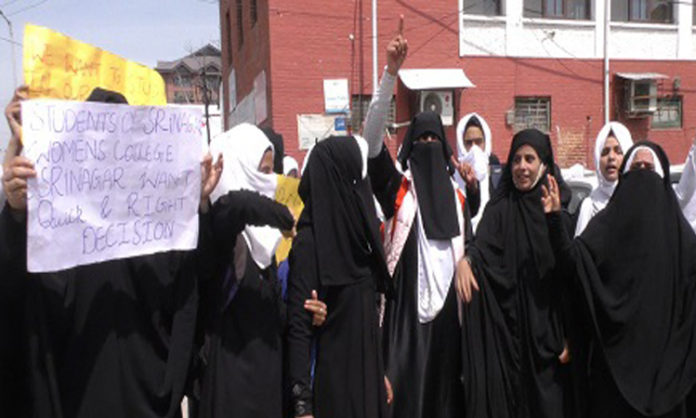 Srinagar: The students of New Women College Srinagar on Wednesday staged a protest against the government’s decision to shift them to other colleges in the city.