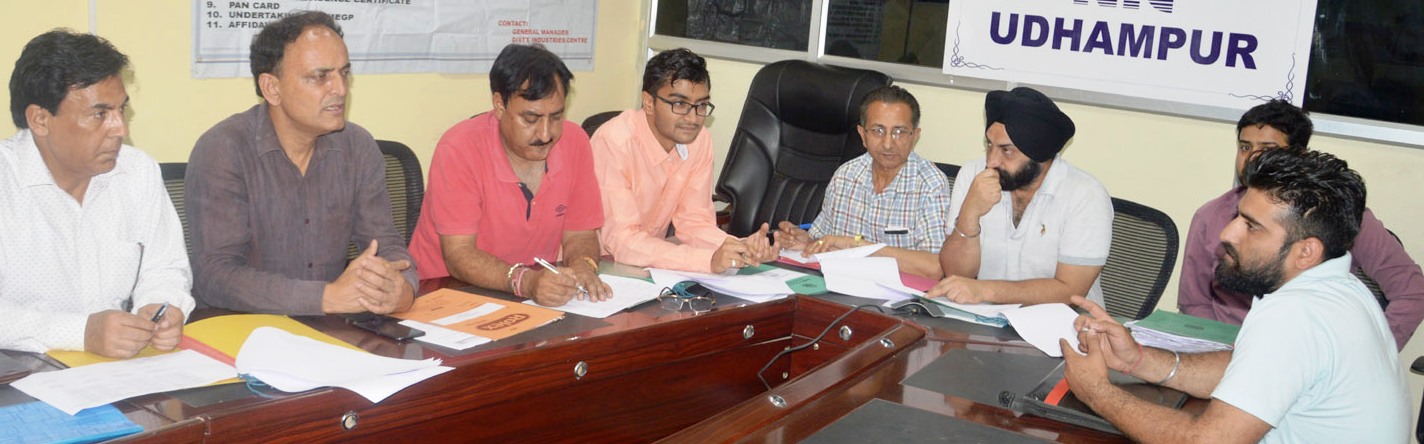 UDHAMPUR, JUNE 03: The First District Level Task Force committee (DLFTC) meeting for the year 2019-20 under Prime Minister Employment Guarantee Program held here today under the Chairmanship of Additional District Development Commissioner, Udhampur Ashok Kumar, which sponsored 134 cases of the un-employed beneficiaries for availing loan assistance under DIC and KVIB Udhampur.