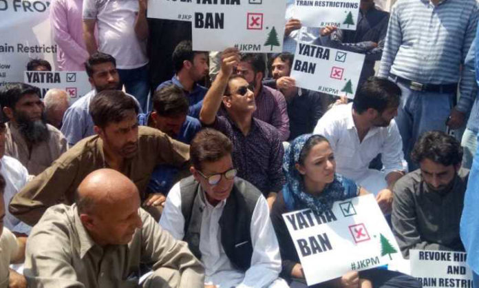 “It is the people of Kashmir like traders, civil society, Hurriyat, mainstream parties and especially the ponywallas of south Kashmir who make the yatra successful and not the security forces,” Er Rasheed said while holding a sit-in at Press Enclave in Srinagar against the suspension of the train service from Banihal to Qazigund in view of the yatra.