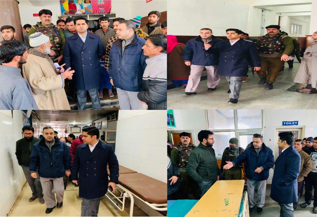 Shopian 05 Feb: In order to take stock of health care facilities being provided to patients, Deputy Commissioner Shopian, Dr. Owais Ahmed, alongwith Addl. Deputy Commissioner Shabir Hussain Bhat paid a surprise visit to District Hospital Shopian. Apart from inspecting various sections of the Hospital, Deputy Commissioner interacted with patients and enquired about the facilities being provided to them.