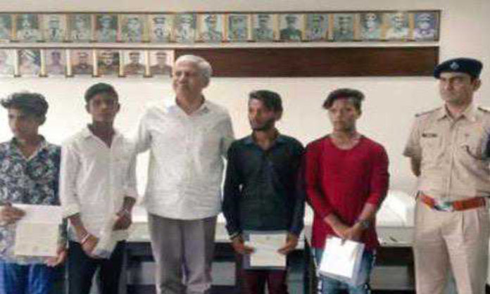 Additional Director General of Police BK Soni gave mementoes—certificates and cash prize to the Jawahar Nagar Kachhi Basti residents—Manish (15), Amit (18), Rohit (18) and Badal (14).