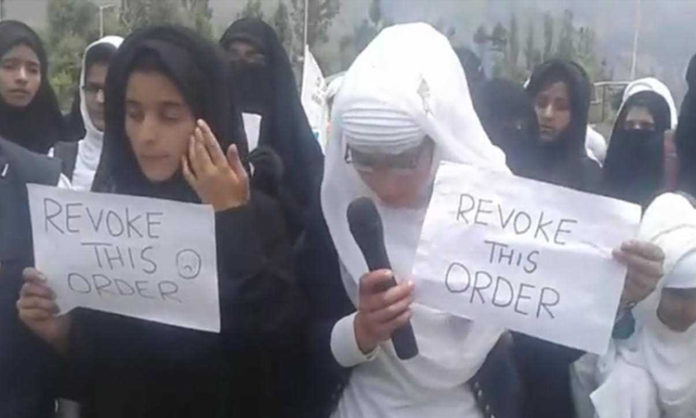 Witnesses said that the students and civil society members assembled inside the college campus and staged a protest demonstration against transfer order of the college Principal, Mohammed Maqbool Rather.