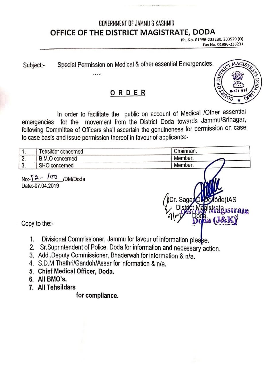 J & K Special Permission On Medical Grounds And Other Emergencies By Paigaam News - April 7, 2019 574 Facebook Twitter Google+ Pinterest WhatsApp
