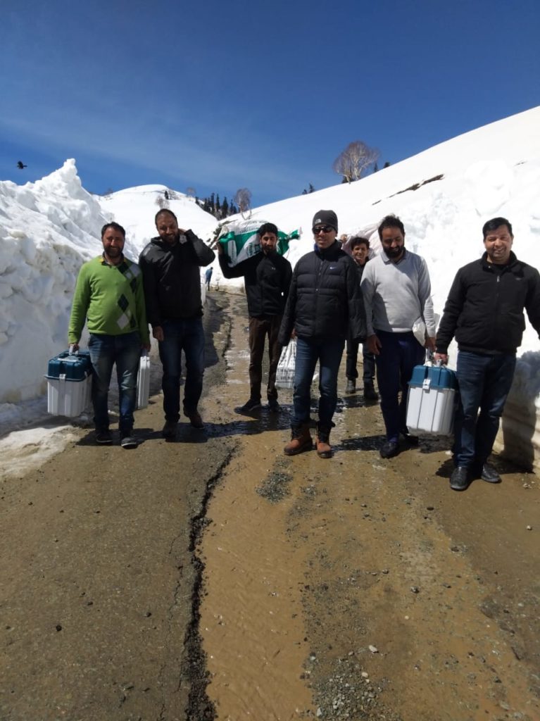 Assistant Commissioner Revenue Reyaz Ahmad Beigh accompanied the polling parties upto Razdan top. Owing to the closure of Bandipora-Gurez road the teams travelled upto Zkhushi in vehicles where from they walked on foot upto Korakbal. Adequate arrangements were made to carry the teams in vehicle up to Dawar.