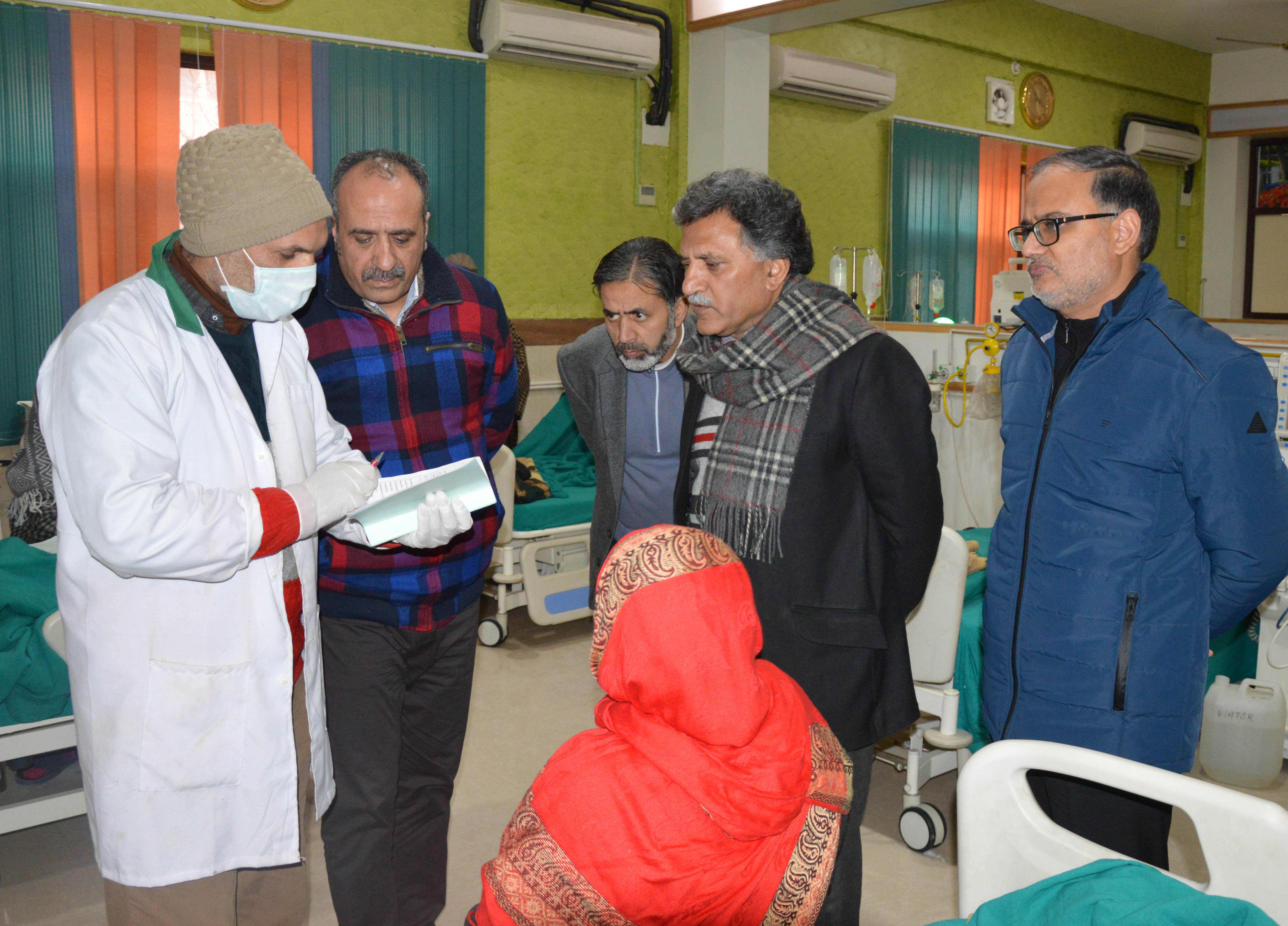 ANANTNAG, JANUARY 08: Advisor to Governor, Khurshid Ahmad Ganai today inspected District Hospital, Anantnag and took stock of the medicare facilities being provided to the patients here. He also visited different sections/wards including emergency ward, post-operative wards, surgical wards, Trauma section, Endoscopy section, Dialysis centre, Cardiac ICU Unit.