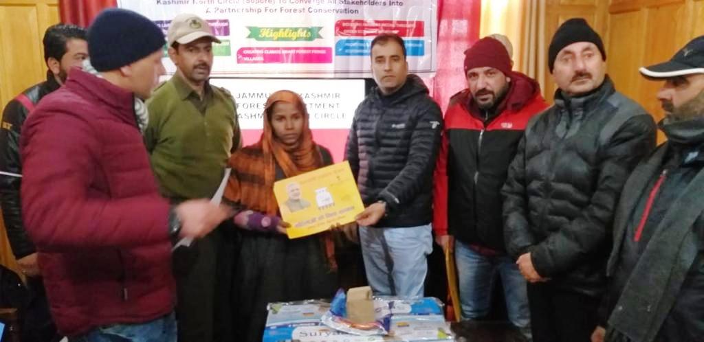 BARAMULLA, JANUARY 09: Baramulla Forest Division, in collaboration with Shalimar Gas Agency, today provided free LPG connections to the eligible families, belonging to forest fringe villages of Khahmoh Forest Block.