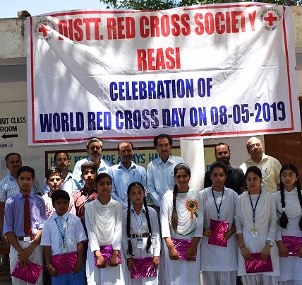 At REASI, the World Red Cross Day was observed at Girls Higher Secondary School, Reasi in which ZEPO Kuldeep Khajuria hoisted flag of Red Cross Society.