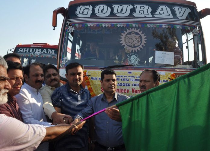 JAMMU, JUNE 09: Divisional Commissioner Jammu, Sanjeev Verma today flagged off an annual pilgrimage to Mata Kheer Bhawani shrine in Tulmulla of Ganderbal District from Nagrota Jammu.