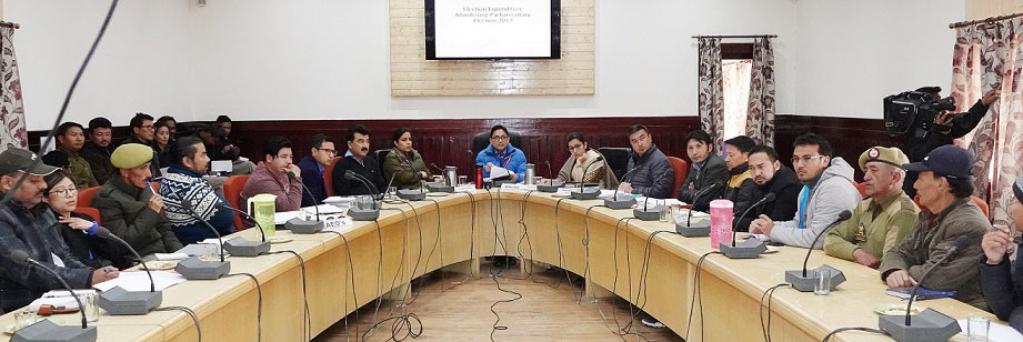 The Returning Officer, Ladakh Parliamentary Constituency, Avny Lavasa, SSP Leh Sargun Shukla, Additional District Development Commissioner Leh Moses Kunzang, Deputy District Election Officer, Leh Gaffar Zargar, Nodal Officer Modal Code of Conduct, Nodal Officer Expenditure and Monitoring, Nodal Officer Media Certification and Monitoring Committee, Nodal Officer Police, Assistant Expenditure Observers, Leh/Nubra and all election expenditure monitoring teams (Flying Squad Team (FST)/ Static Surveillance Team (SST)/ Video Surveillance Team (VST)/ Video Viewing Team (VVT) /Accounting team etc. attended the meeting.