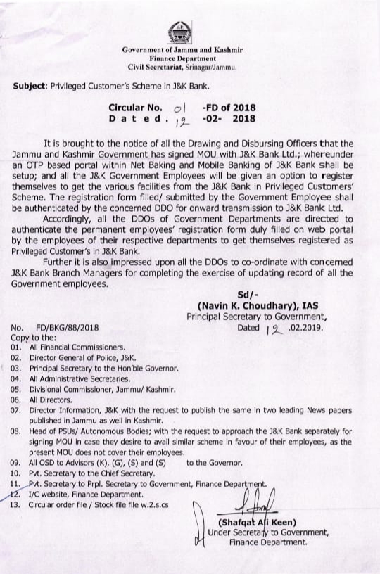 J & K Privileged Customer’s Scheme in J&K Bank By Paigaam News - February 12, 2019 664 Facebook Twitter Google+ Pinterest WhatsApp Photo for representational purpose only.