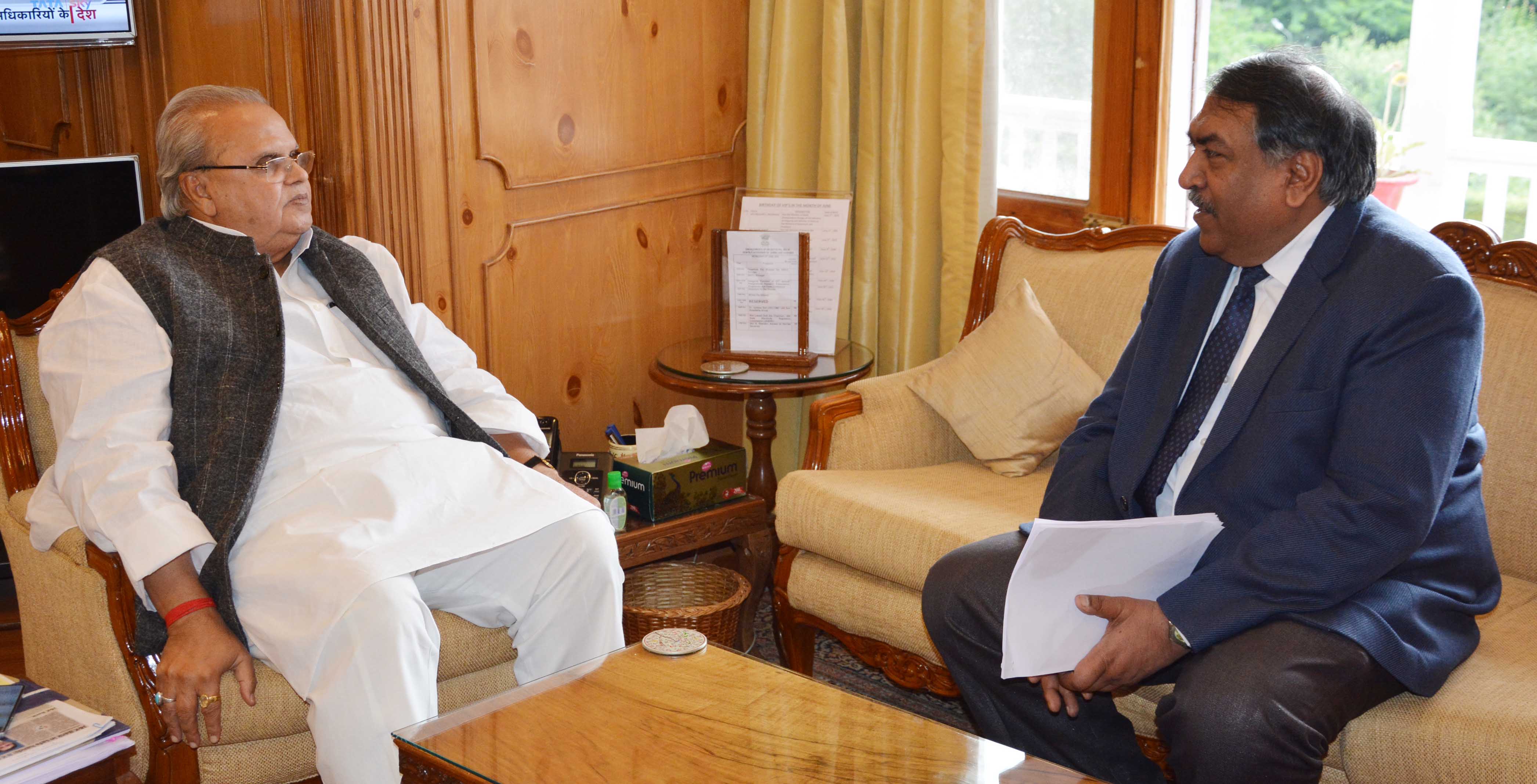 SRINAGAR, JUNE 12: Sh. Lokesh Dutt Jha , Chairman, Jammu and Kashmir State Electricity Regulatory Commission (JKSERC) met Governor Satya Pal Malik at the Raj Bhavan here today.