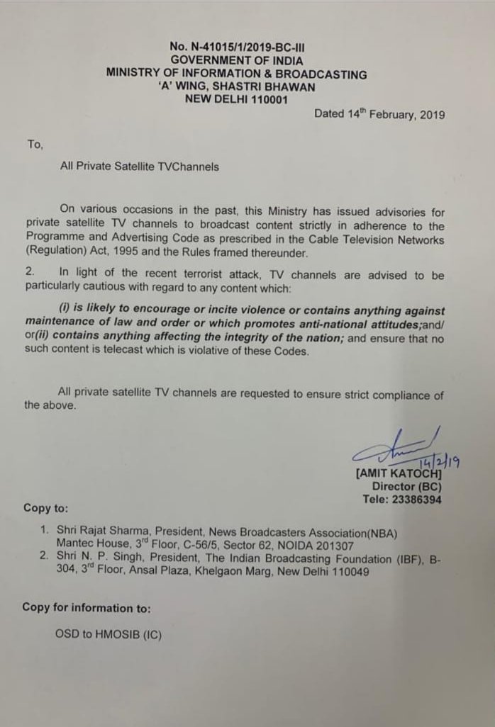Nation Indian TV Channel Disciplined for Terror Coverage By Paigaam News - February 14, 2019 478 Facebook Twitter Google+ Pinterest WhatsApp Photo for representational purpose only.