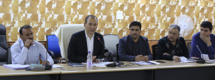 SRINAGAR, MAY 14: Commissioner Secretary Tourism Rigzin Sampheal Tuesday chaired a meeting to review the status of projects under the Prime Minister’s Development Programme (PMDP) scheme and capital expenditure (Capex) Budget 2019-20 here.