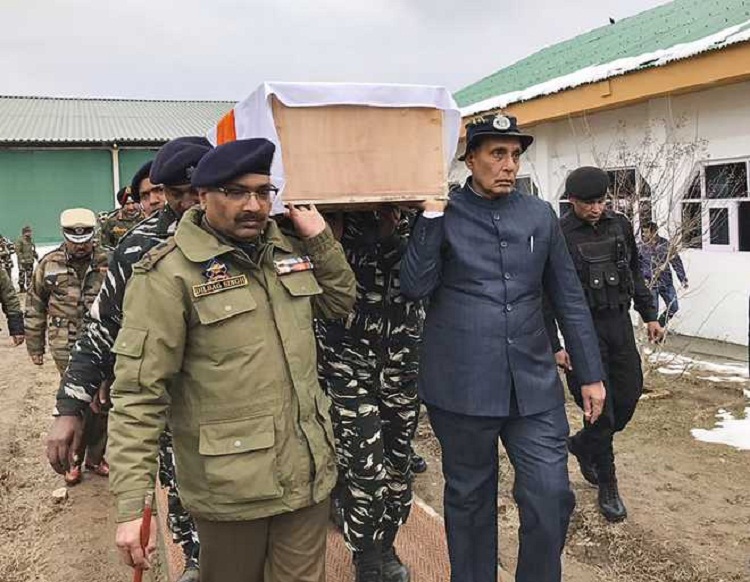 Rajnath Singh helps carry coffin of slain CRPF jawan