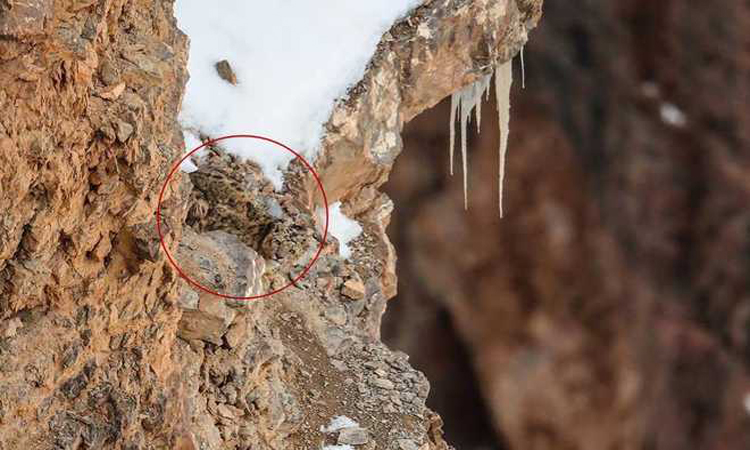 New Delhi, May 16:A photograph of a snow leopard clicked by wildlife photographer Saurabh Desai has gone viral on social media after many netizens found it hard to spot the animal on a rocky mountain with patches of snow.