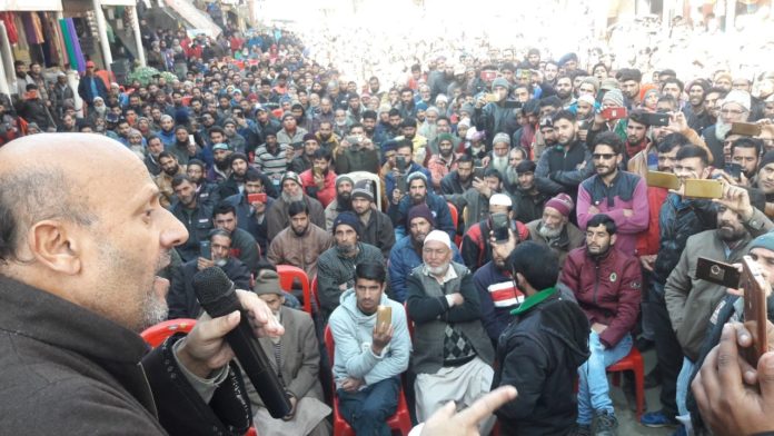 Ramban 17 January: Urging state administration not to become rubber stamps in hands of political parties, AIP President Er. Rasheed has claimed that AIP is the only viable political alternative that can truly and sincerely speak for the political aspirations of people of the state. To hide their failures, all these parties have been constantly misusing their position and not allowing AIP to take its mission to every nook and corner of the state. Addressing a huge gathering at Khari Ramban today Er. Rasheed said that neither talking about resolution to Kashmir dispute amounts to being communal nor fighting against VIP culture, miss governance and nepotism is a crime. He said “Let people of J&K decide what they want, not the agencies. Kashmir issue is not that of a religion or a region but it has effected every single individual and its resolution will open a new era of development in the entire state. It is BJP, congress and their puppets in J&K who don’t want to peo0ple even listen about the dividends of resolution of Kashmir dispute”. Er. Rasheed added that New Delhi has nothing significant to show that could authenticate its claims of J&K being put on track to become a state that could compete at national and international level. The failure of New Delhi to construct even a pity four lane road from Jammu to Srinagar, the miserable living conditions of people living in Chinab valley and outsourcing all resources expose New Delhi’s real intentions. Er. Rasheed appealed masses to own AIP as an alternate platform and sought votes for party nominee Arif Waheed who is a well-known journalist, social and political activist and has played a vital role to highlight the sufferings of masses. Speaking on the occasion Party’s founder leader Tariq Rasheed said that people must give AIP a chance to represent them and said party has represented people of J&K in and outside assembly without compromising the truth. Party District president Ramban and nominee for the up-coming elections Arif Waheed said that people of Chinab valley are ready to take AIP’s mission to every door and said that party believes in serving all sections of society without discrimination and without compromising its principal stand on various issues