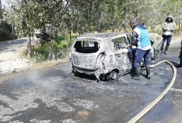 CRPF and Jammu & Kashmir Police were the first respondents. Later, fire brigade came. By then, the car had turned into ash. A case has been registered in Police Station Warpora, Sopore.