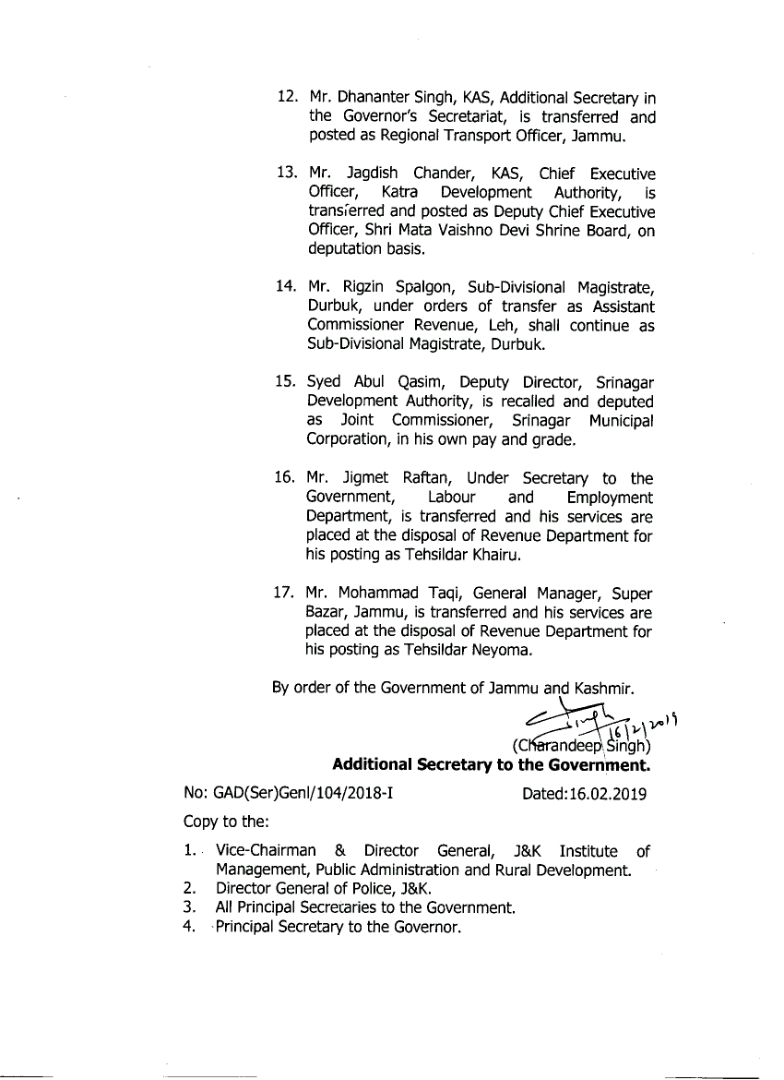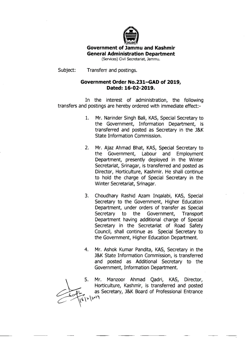 J & K Transfers and Postings By Paigaam News - February 19, 2019 522 Facebook Twitter Google+ Pinterest WhatsApp Photo for representation only.